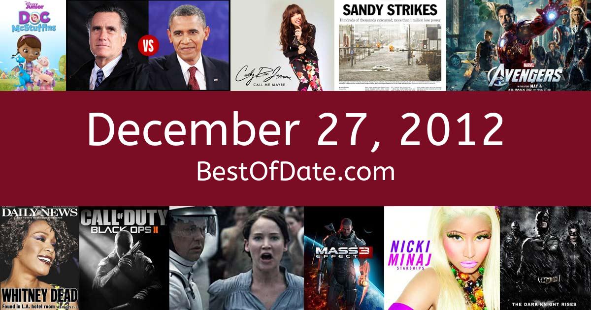News stories, pop culture trends, and other events that happened around December 27, 2012.