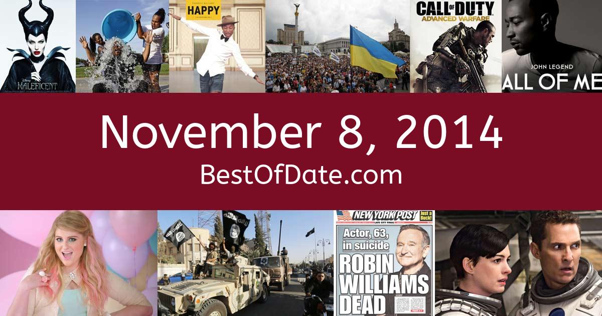 November 8, 2014, was a Saturday. It was 11 years and 1 month ago. The zodiac star sign for this date is Scorpio.