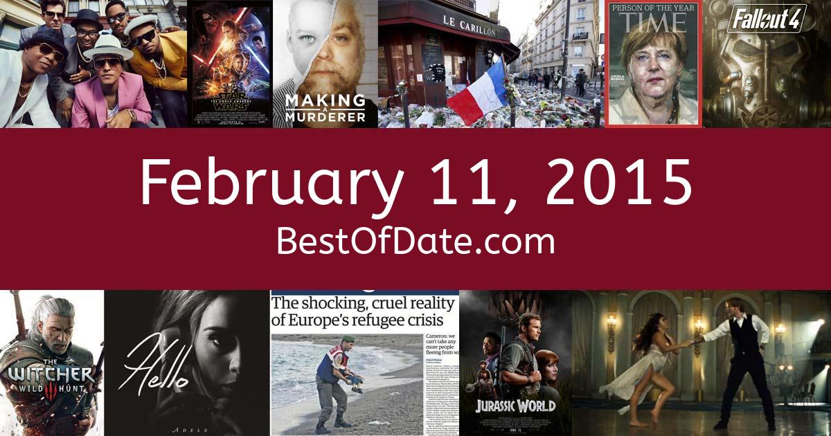 News stories, pop culture trends, and other events that happened around February 11, 2015.