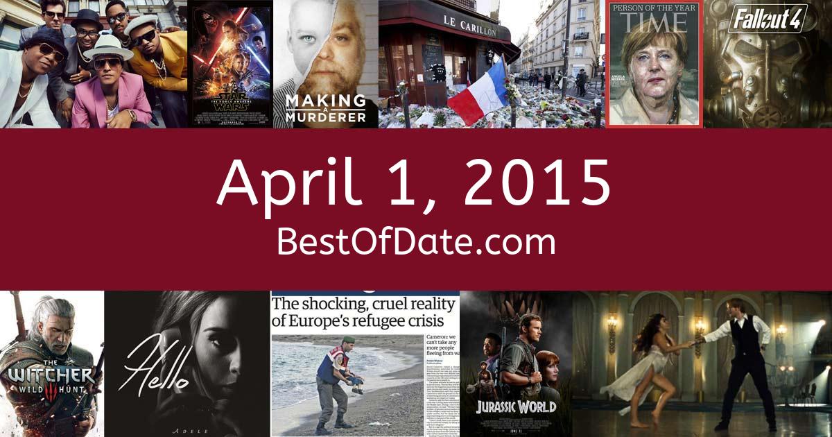 News stories, pop culture trends, and other events that happened around April 1, 2015.