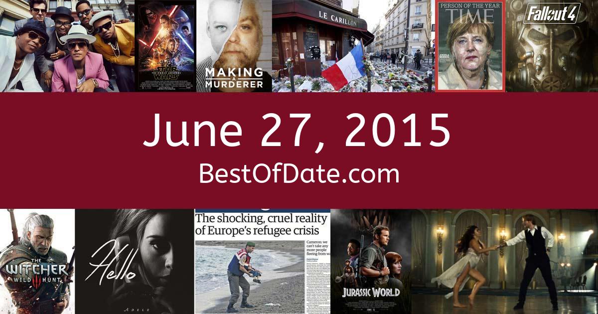 News stories, pop culture trends, and other events that happened around June 27, 2015.