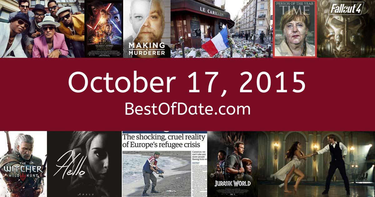 News stories, pop culture trends, and other events that happened around October 17, 2015.