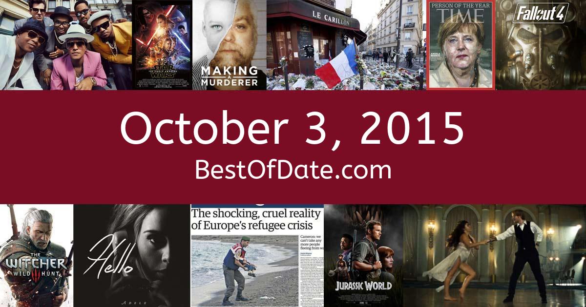 News stories, pop culture trends, and other events that happened around October 3, 2015.