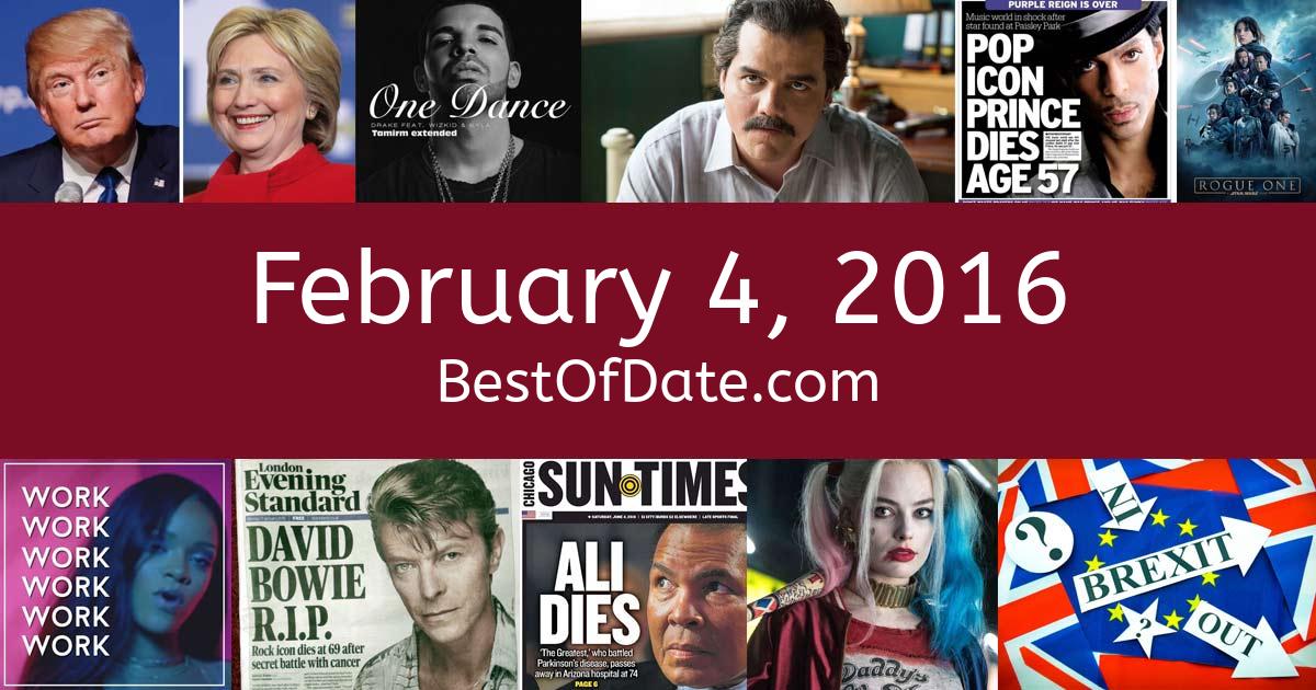 Notable events that happened close to February 4, 2016.