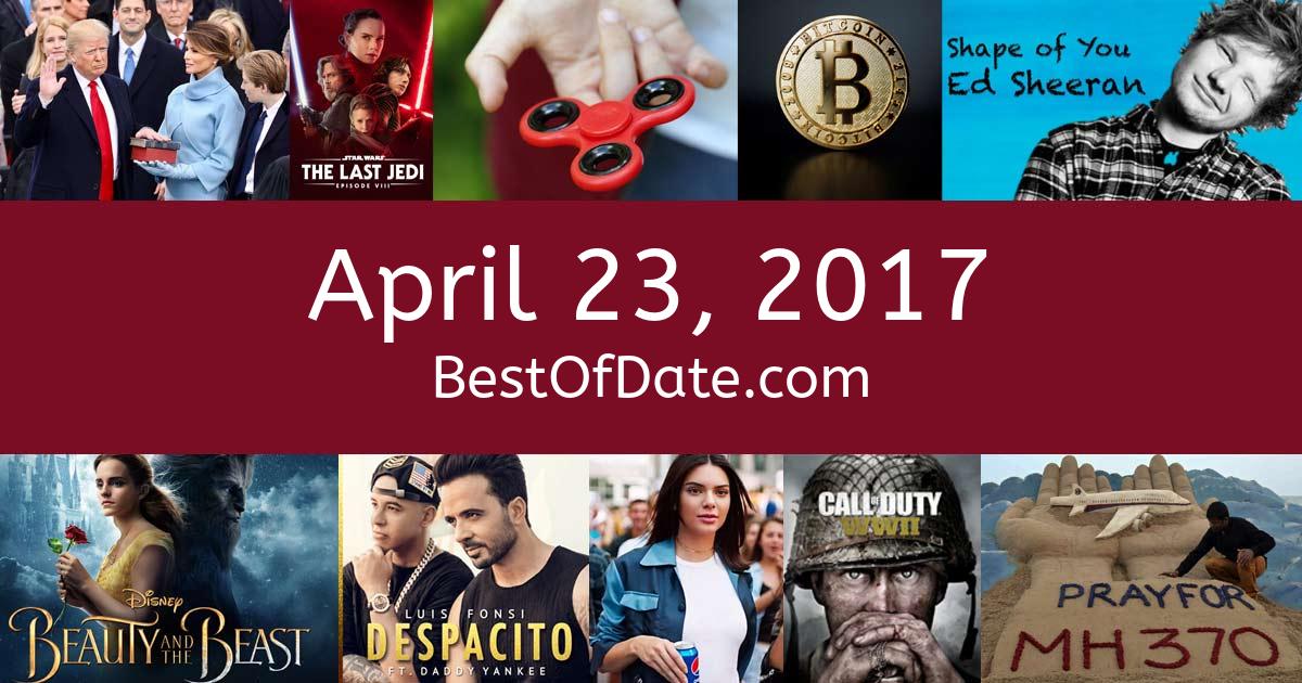 News stories, pop culture trends, and other events that happened around April 23, 2017.