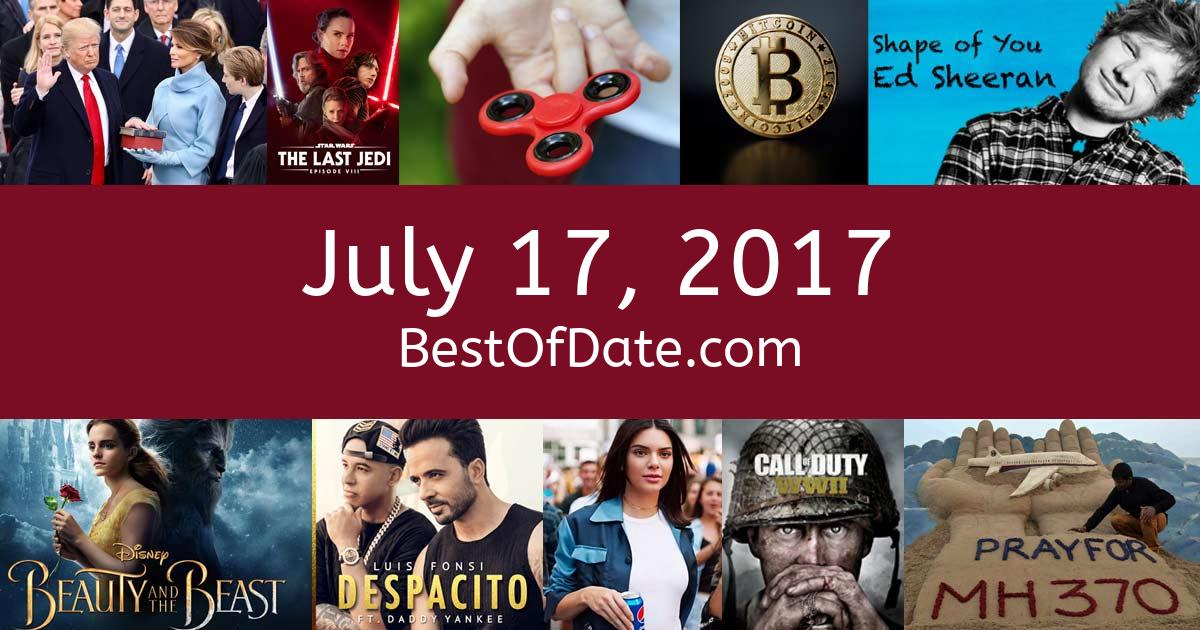 News stories, pop culture trends, and other events that happened around July 17, 2017.