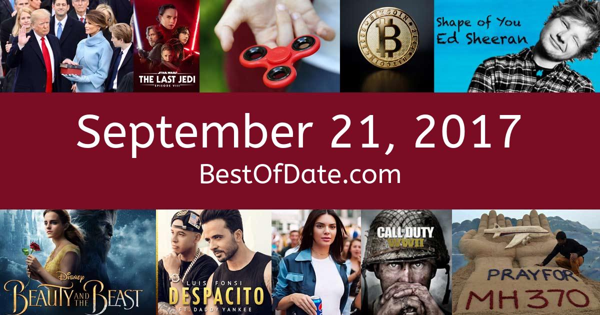 News stories, pop culture trends, and other events that happened around September 21, 2017.