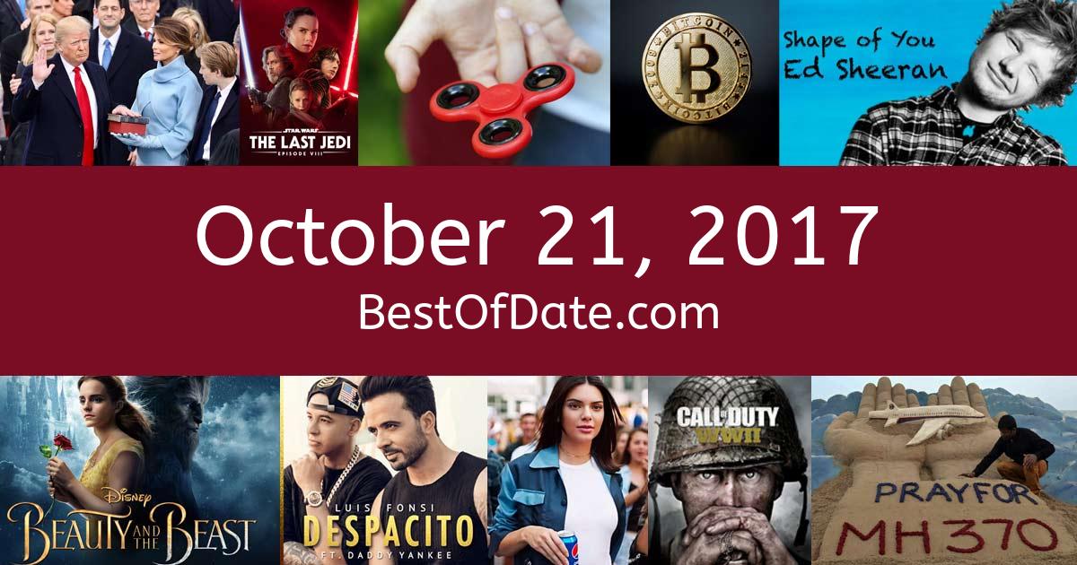News stories, pop culture trends, and other events that happened around October 21, 2017.