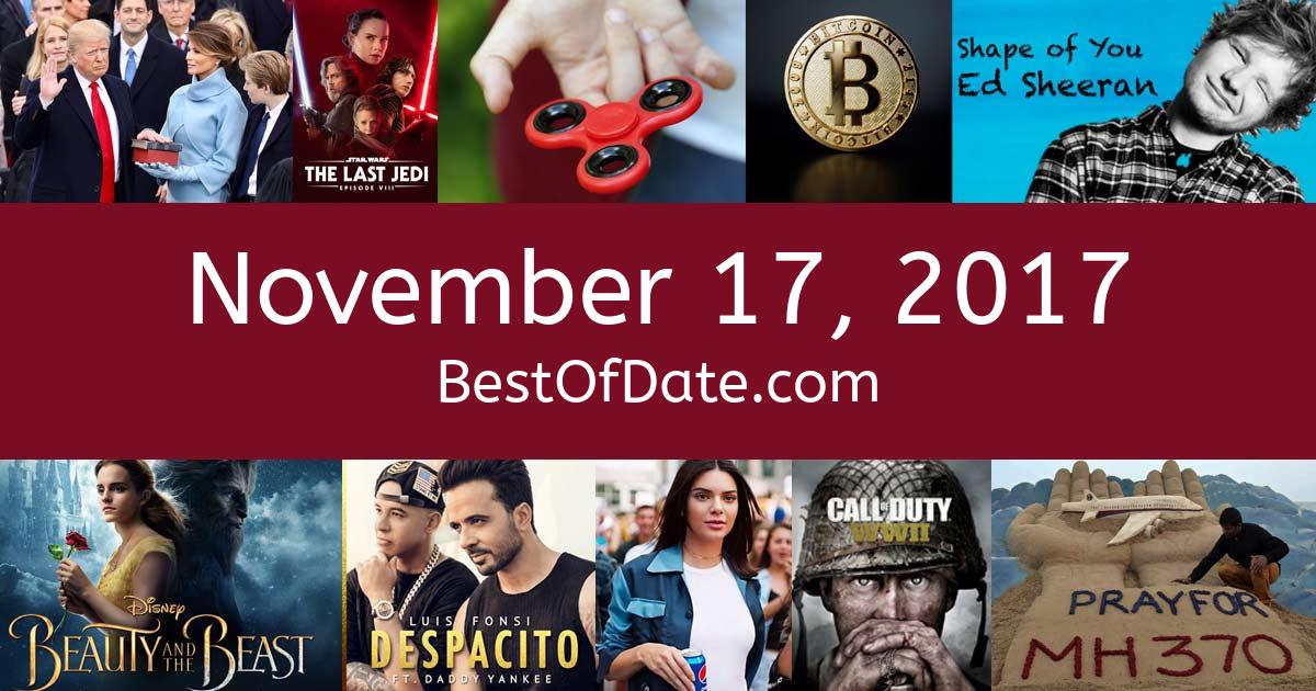 News stories, pop culture trends, and other events that happened around November 17, 2017.