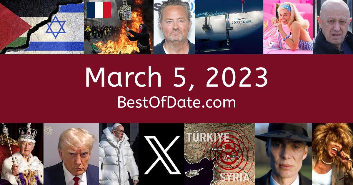 News stories, pop culture trends, and other events that happened around March 5, 2023.