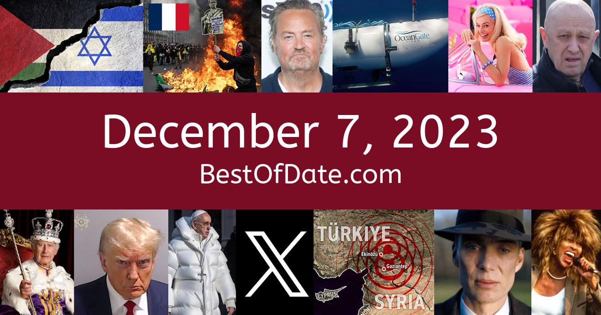 News stories, pop culture trends, and other events that happened around December 7, 2023.