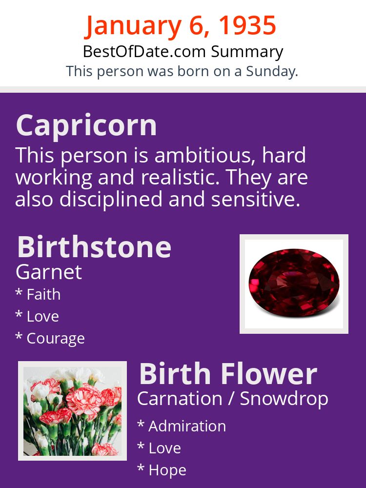 A personality summary image for people who were born on Sunday, January 6th, 1935.