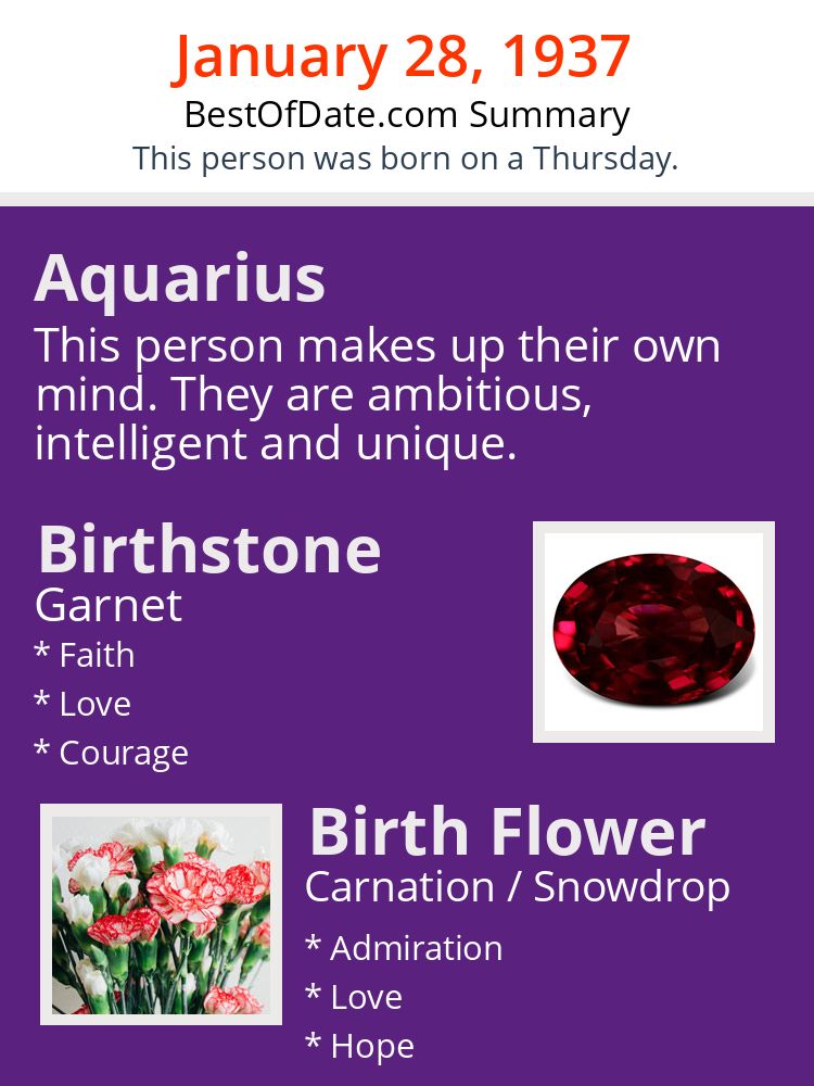 A personality summary image for people who were born on Thursday, January 28th, 1937.