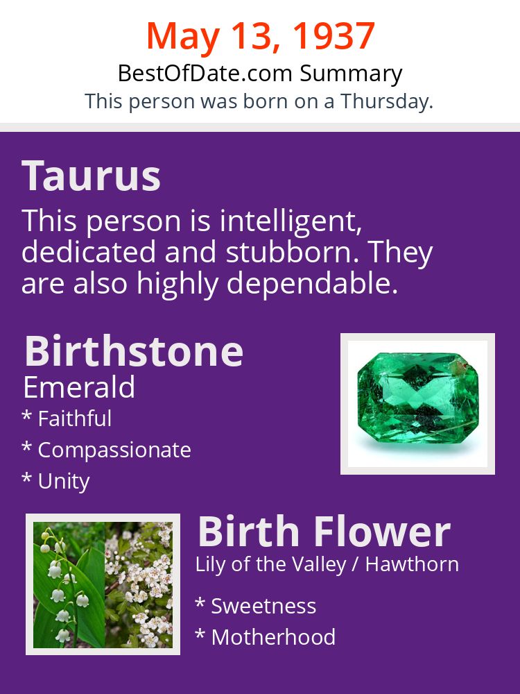 A personality summary image for people who were born on Thursday, May 13th, 1937.