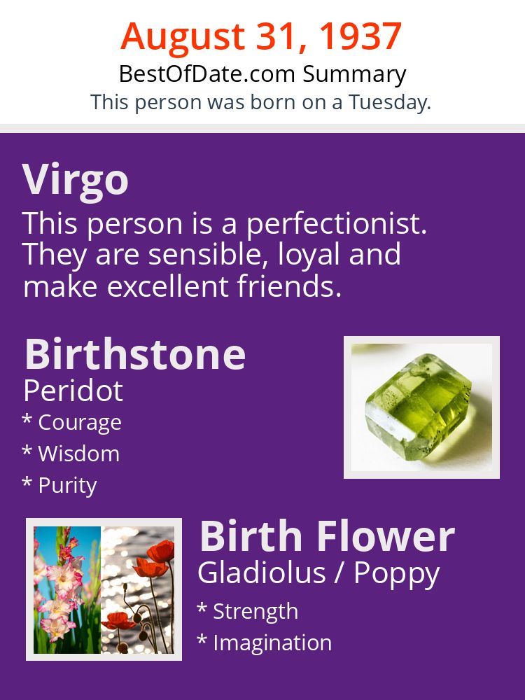 A personality summary image for people who were born on Tuesday, August 31st, 1937.