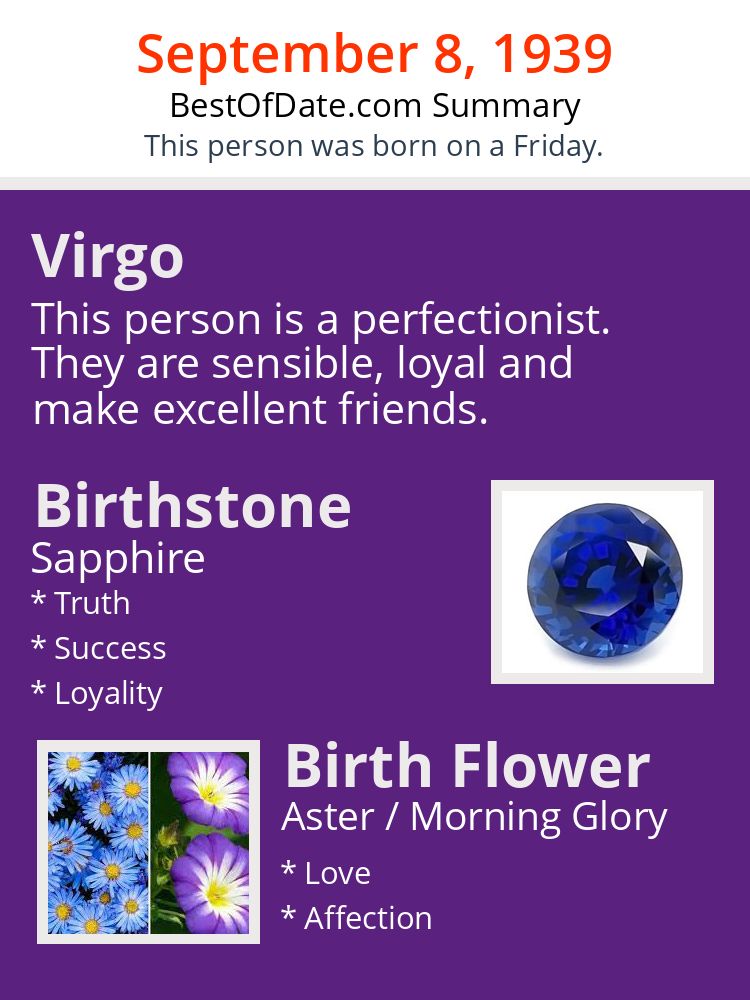 A personality summary image for people who were born on Friday, September 8th, 1939.