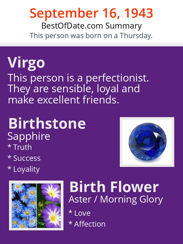 A personality summary image for people who were born on Thursday, September 16th, 1943.