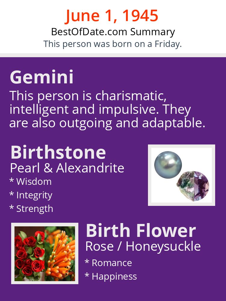 A personality summary image for people who were born on Friday, June 1st, 1945.