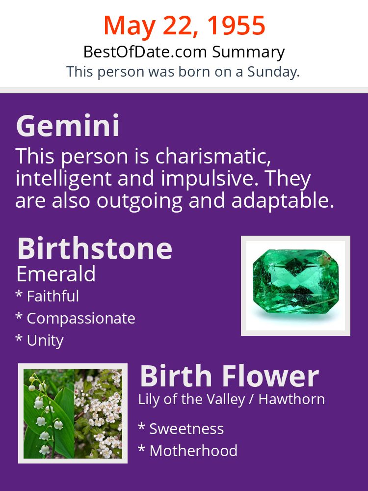 A personality summary image for people who were born on Sunday, May 22nd, 1955.