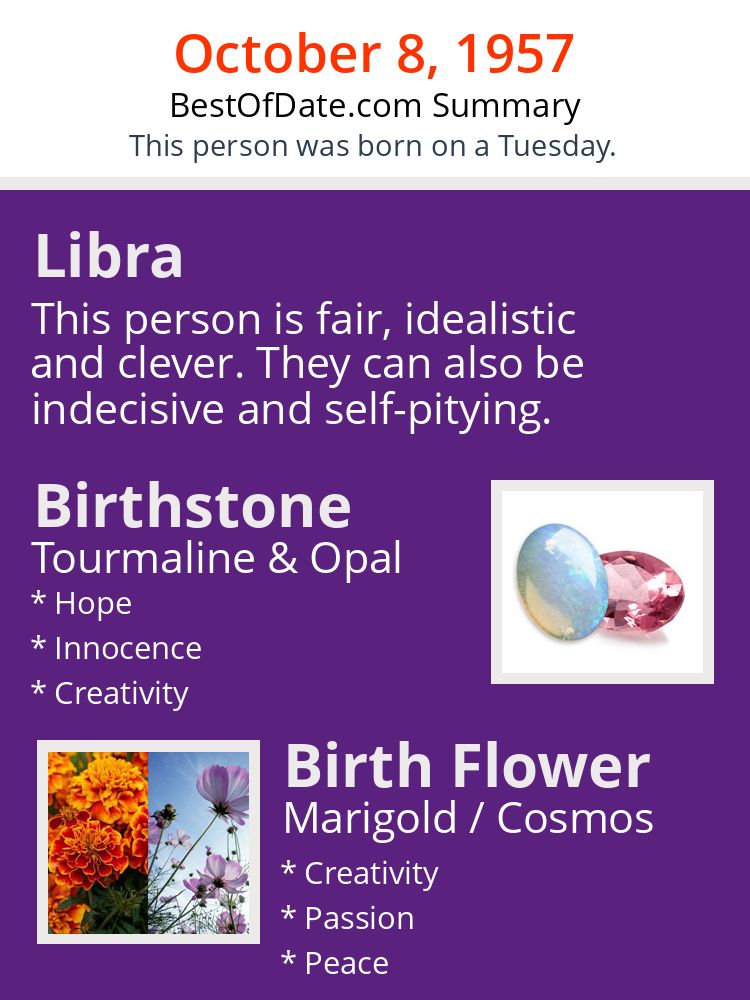 A personality summary image for people who were born on Tuesday, October 8th, 1957.