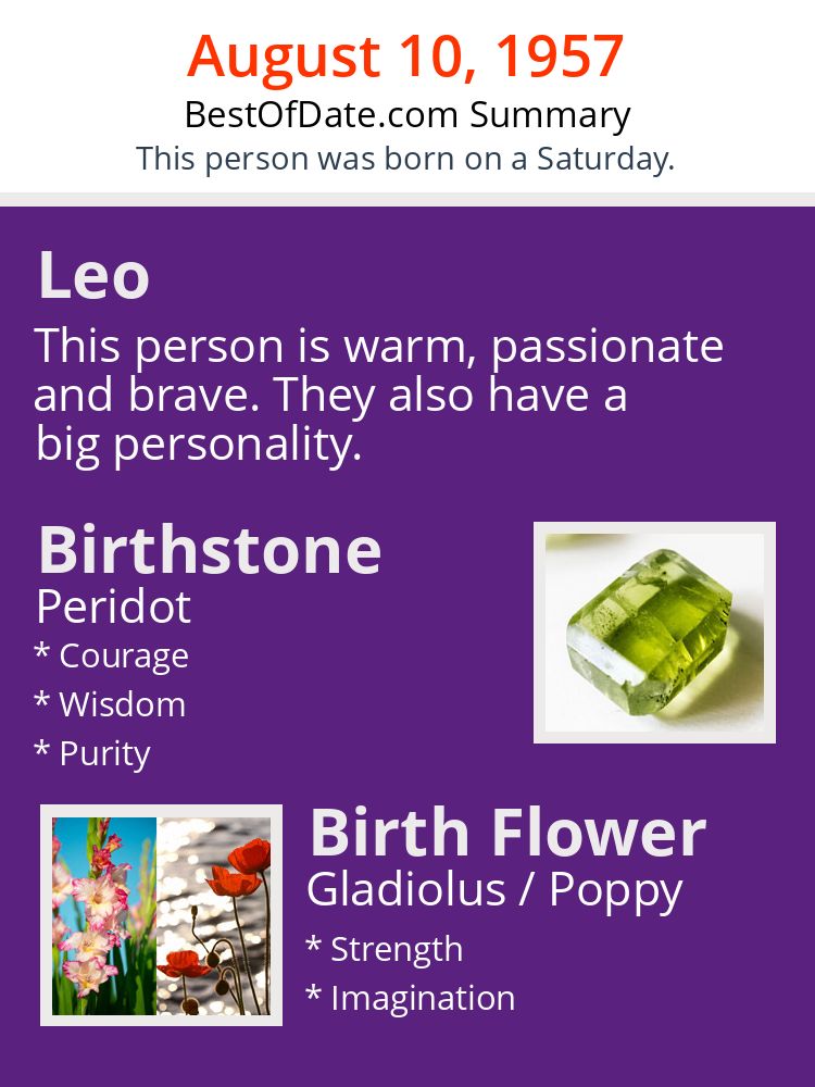 A personality summary image for people who were born on Saturday, August 10th, 1957.