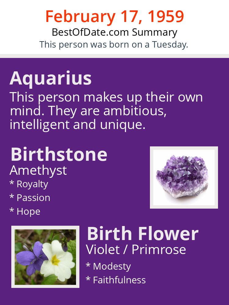 A personality summary image for people who were born on Tuesday, February 17th, 1959.