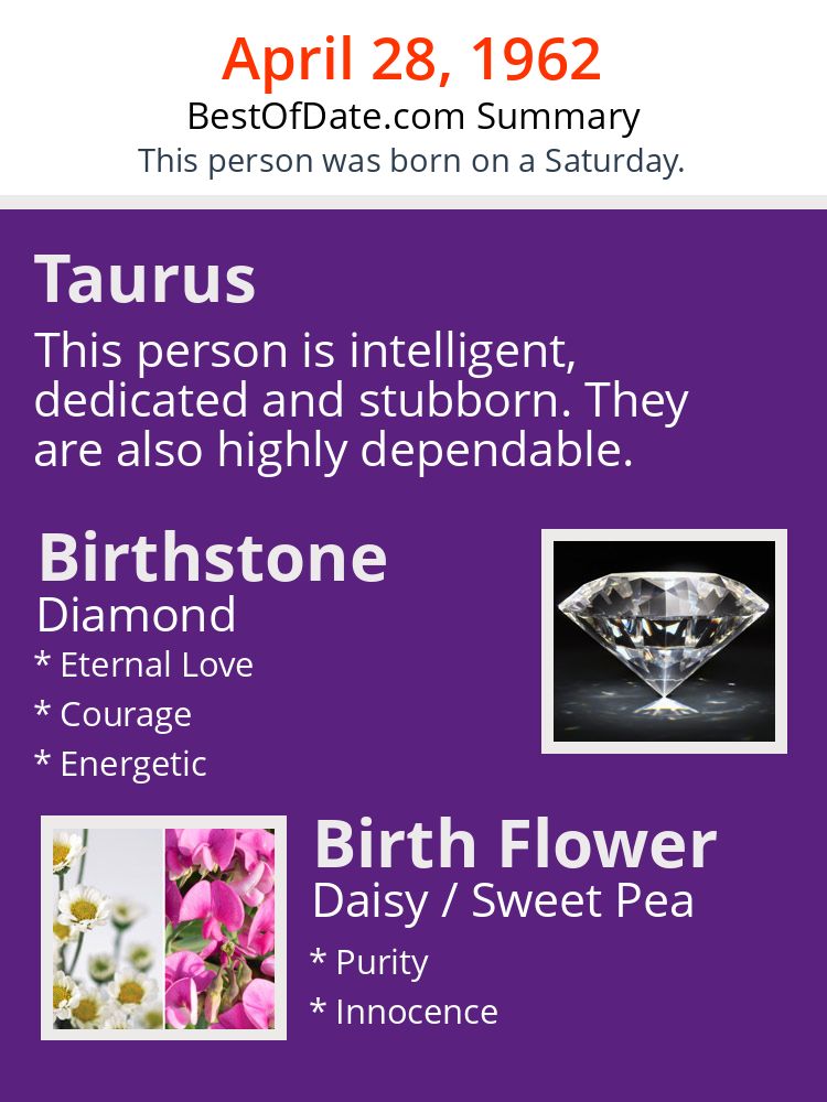 A personality summary image for people who were born on Saturday, April 28th, 1962.