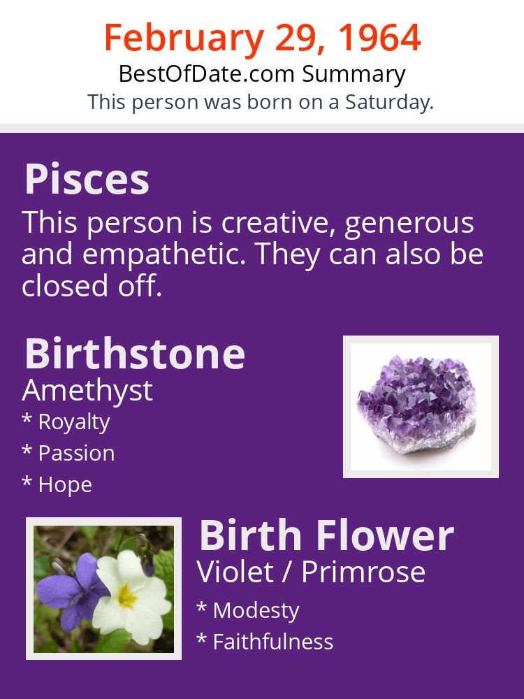 A personality summary image for people who were born on Saturday, February 29th, 1964.
