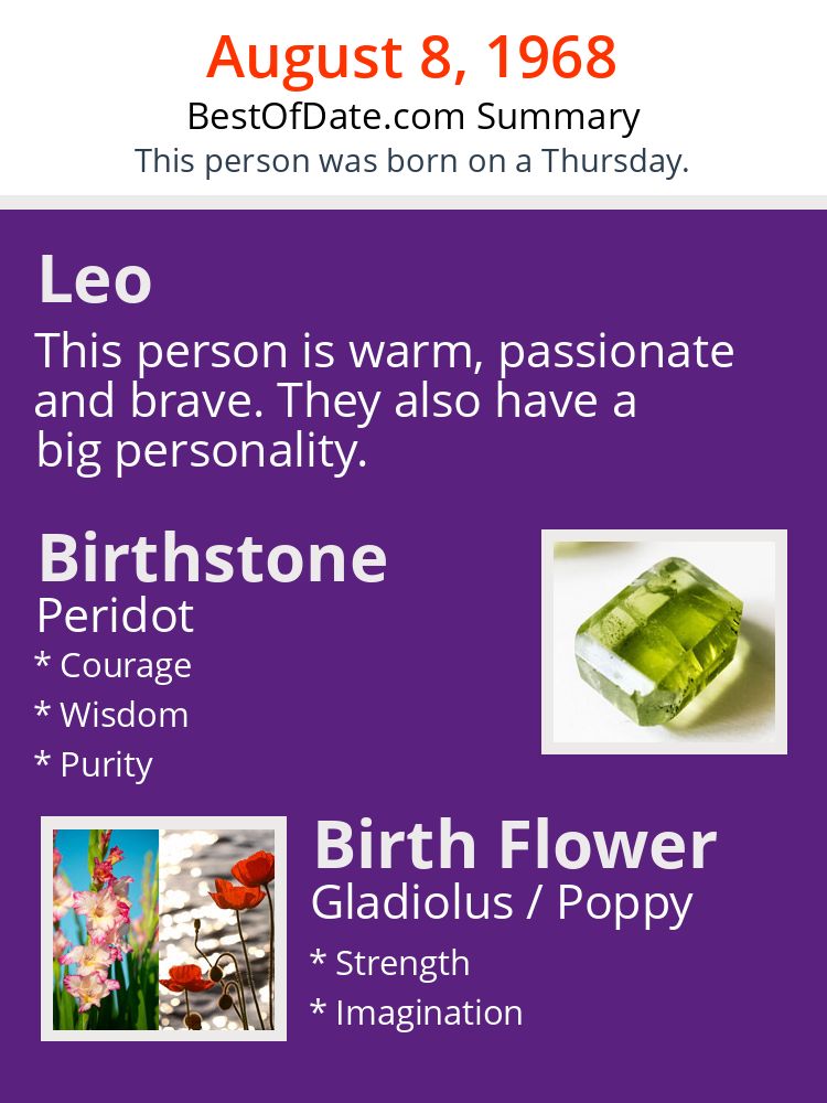 A personality summary image for people who were born on Thursday, August 8th, 1968.