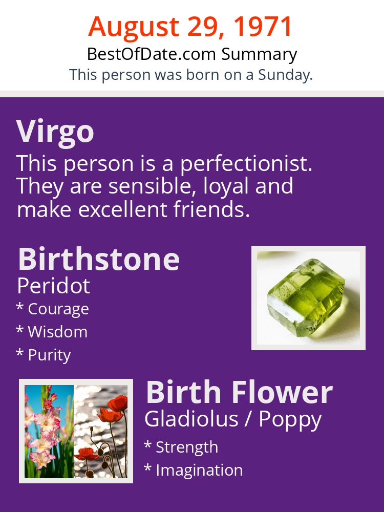 A personality summary image for people who were born on Sunday, August 29th, 1971.