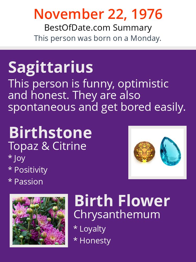 A personality summary image for people who were born on Monday, November 22nd, 1976.