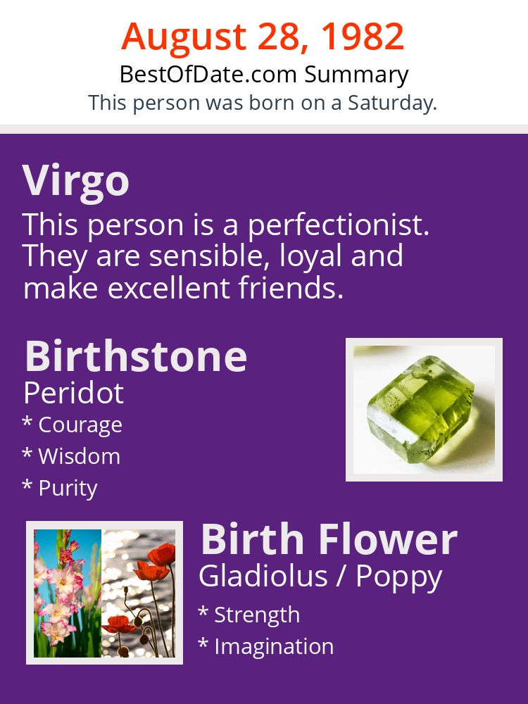 A personality summary image for people who were born on Saturday, August 28th, 1982.