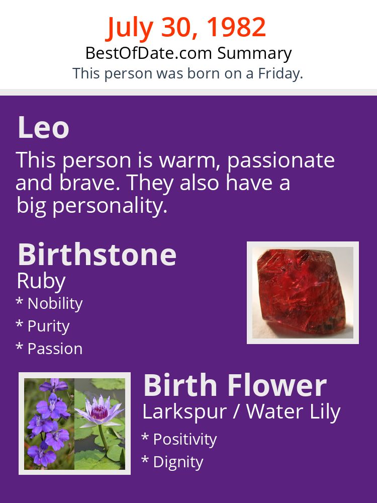 A personality summary image for people who were born on Friday, July 30th, 1982.
