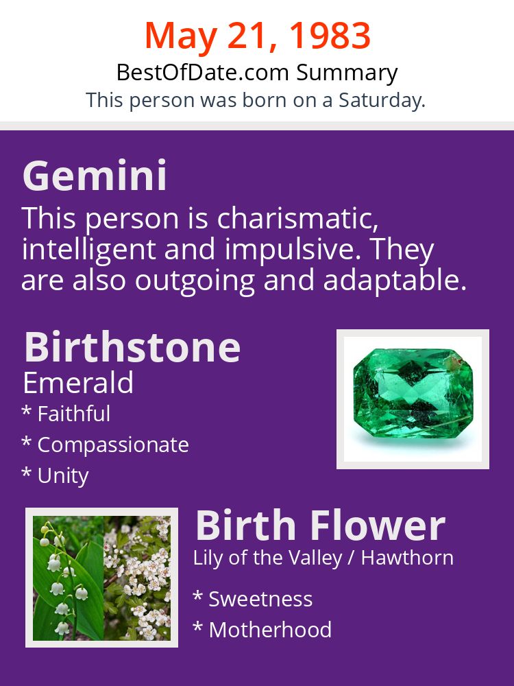 A personality summary image for people who were born on Saturday, May 21st, 1983.