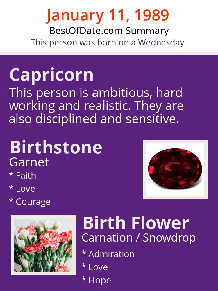 A personality summary image for people who were born on Wednesday, January 11th, 1989.