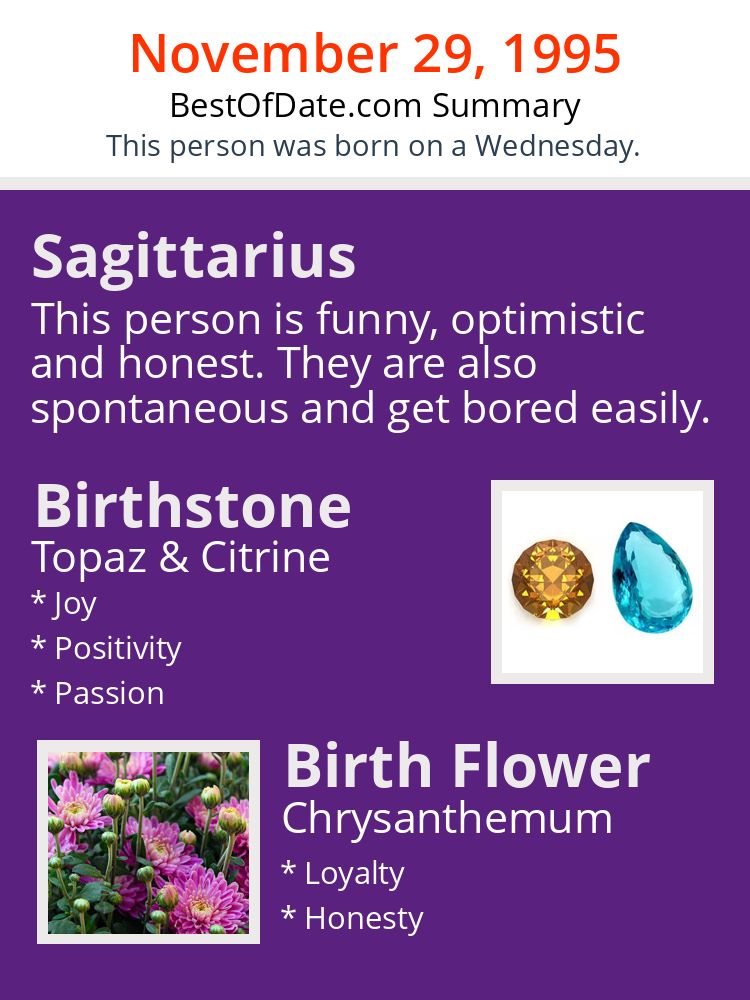 A personality summary image for people who were born on Wednesday, November 29th, 1995.