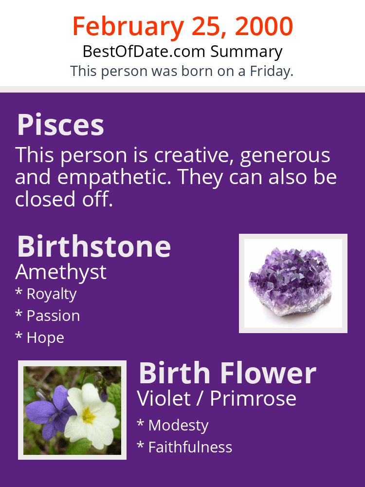 A personality summary image for people who were born on Friday, February 25th, 2000.