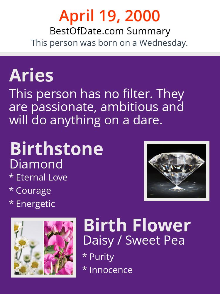 A personality summary image for people who were born on Wednesday, April 19th, 2000.