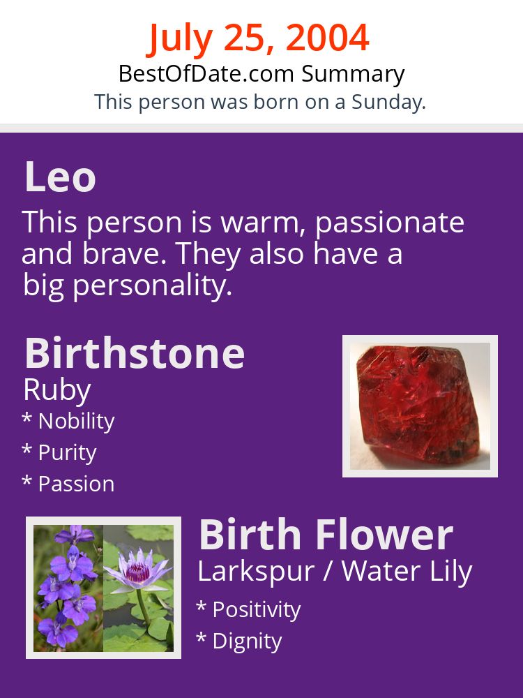 A personality summary image for people who were born on Sunday, July 25th, 2004.