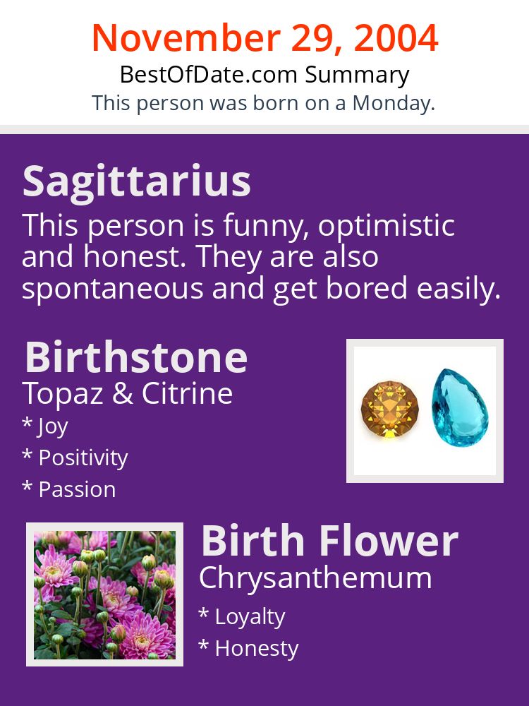 A personality summary image for people who were born on Monday, November 29th, 2004.