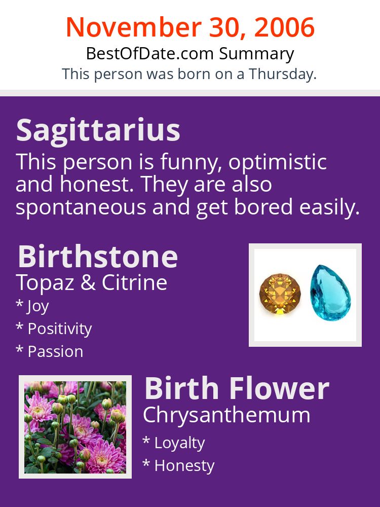 A personality summary image for people who were born on Thursday, November 30th, 2006.