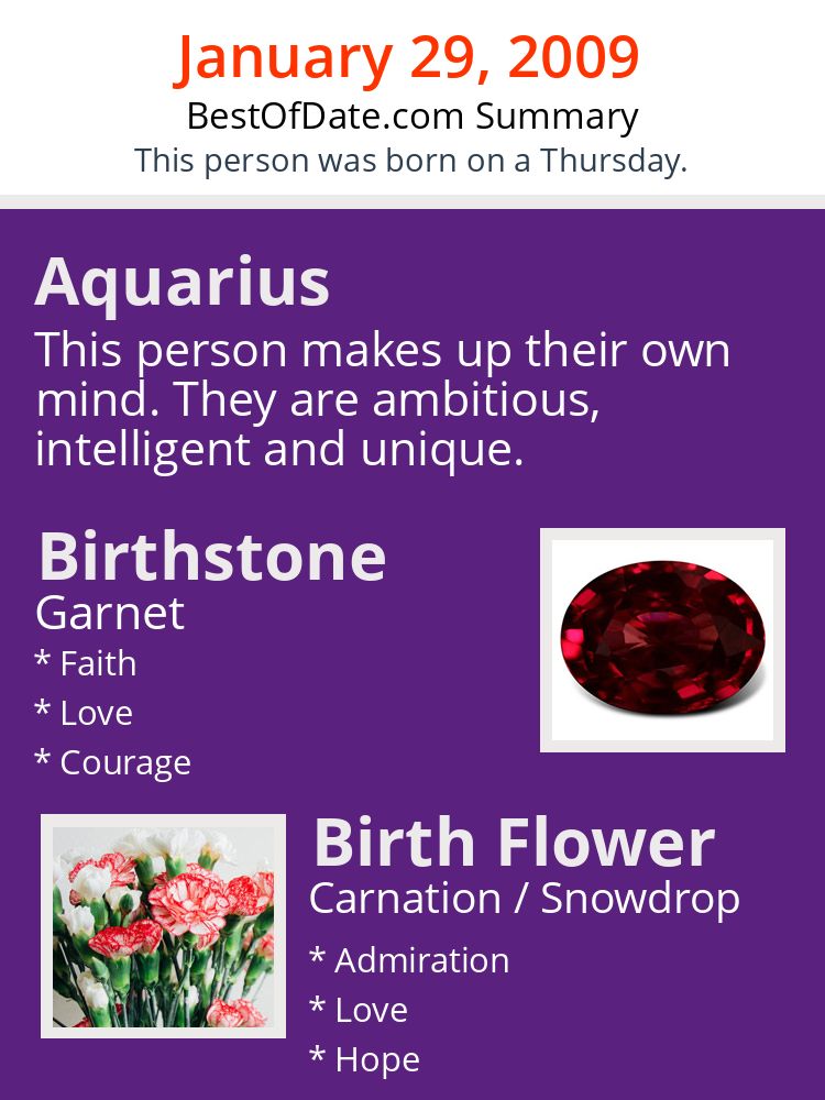 A personality summary image for people who were born on Thursday, January 29th, 2009.