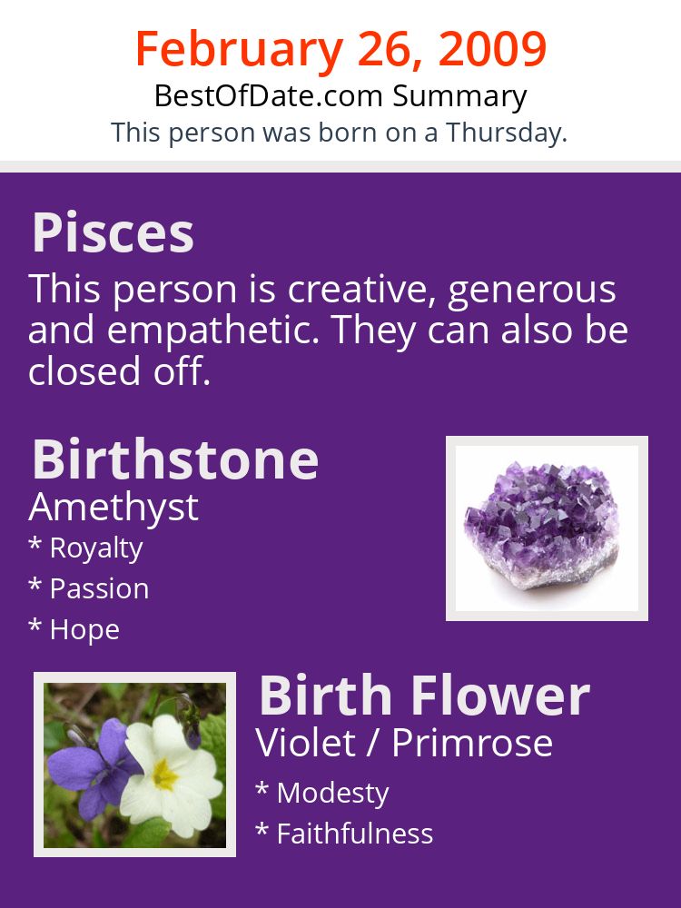 A personality summary image for people who were born on Thursday, February 26th, 2009.