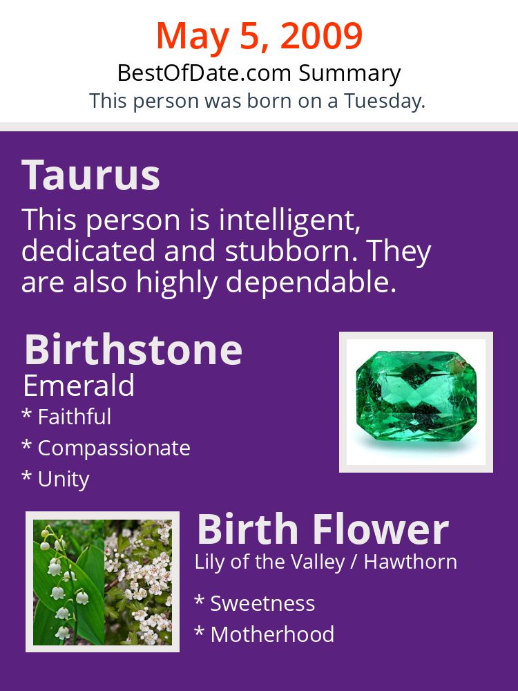 A personality summary image for people who were born on Tuesday, May 5th, 2009.
