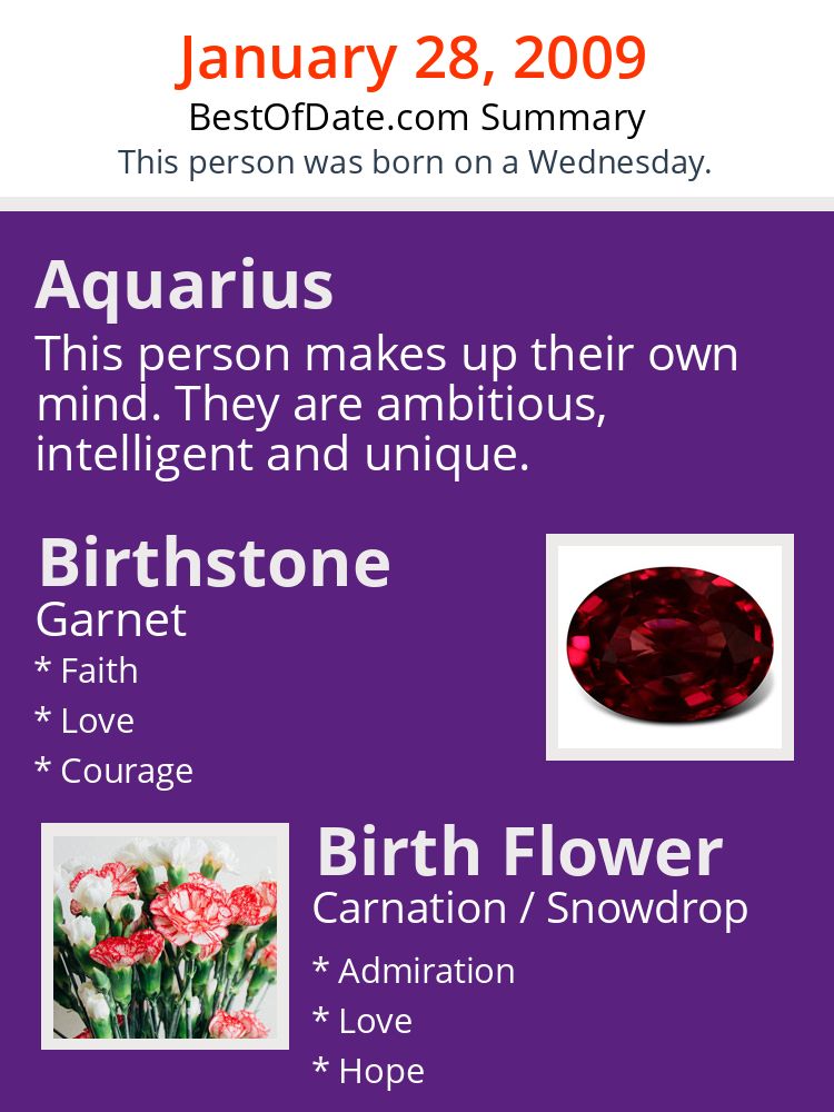 A personality summary image for people who were born on Wednesday, January 28th, 2009.