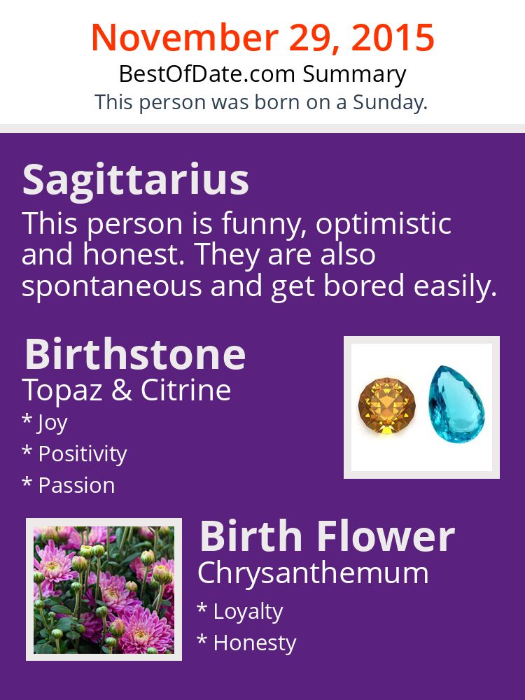 A personality summary image for people who were born on Sunday, November 29th, 2015.
