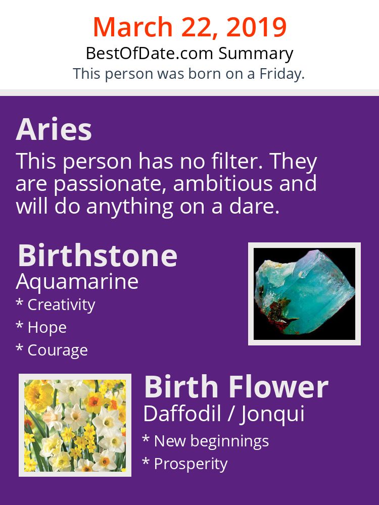 A personality summary image for people who were born on Friday, March 22nd, 2019.