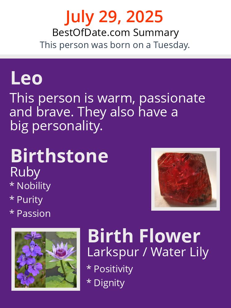 A personality summary image for people who were born on Tuesday, July 29th, 2025.