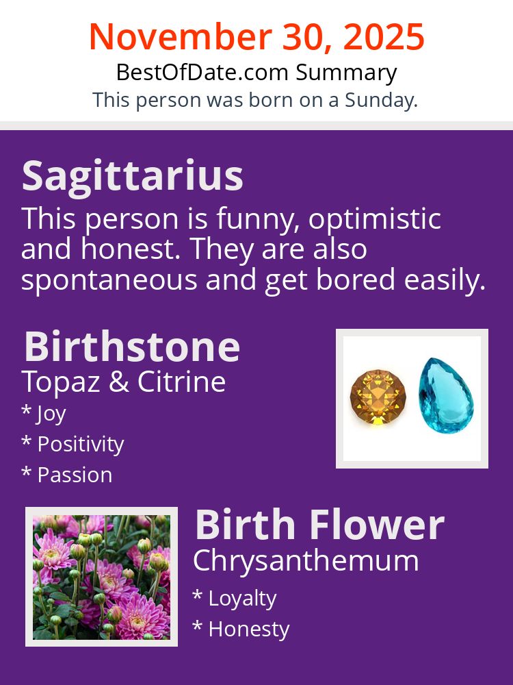 A personality summary image for people who were born on Sunday, November 30th, 2025.